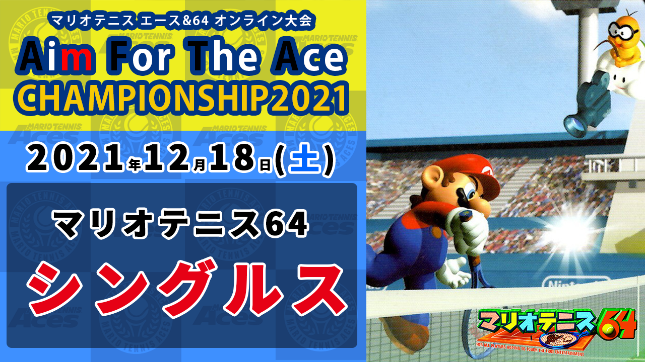 2021年12月18日(土)に、マリオテニス エース及びマリオテニス64のオンライン大会「Aim For The Ace CHAMPIONSHIP2021」を開催します!